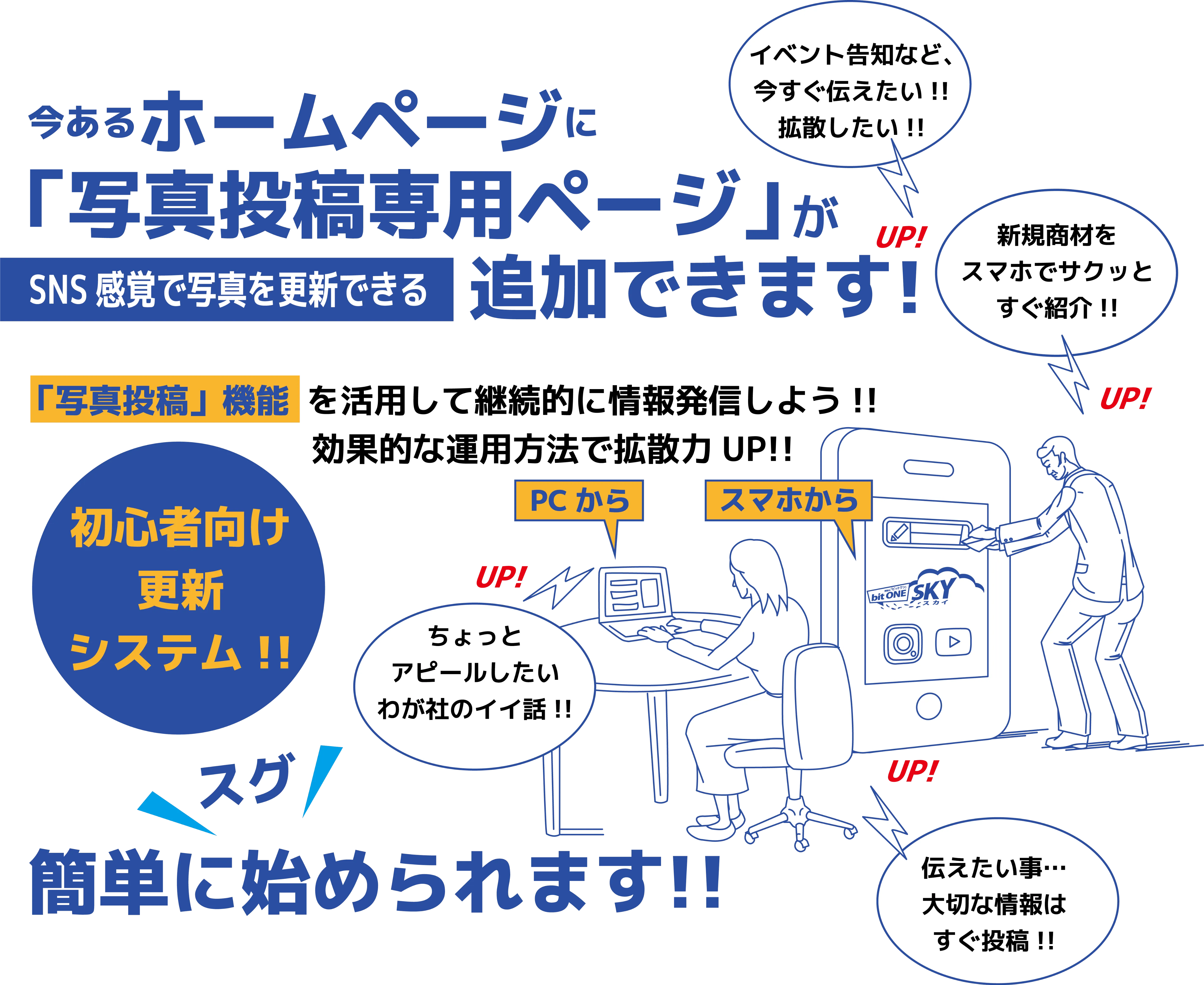 bitONE SKYは今お使いのホームページに導入できるソフトウエアです。